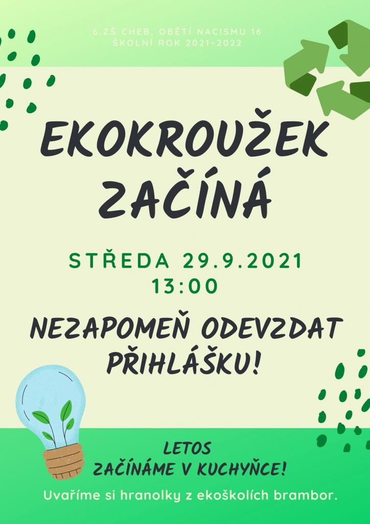 Zahajovací schůzku si letos uděláme v nové školní kuchyňce. Vyrobíme si z lokálních a sezóních surovin (ekoškolích brambor) domácí hranolky s dipem. Ekokroužek na naší škole funguje díky dlouhodobé spolupráci s DDM Sova Cheb. Budeme se těšit na všechny zájemce, kteří dorazí.