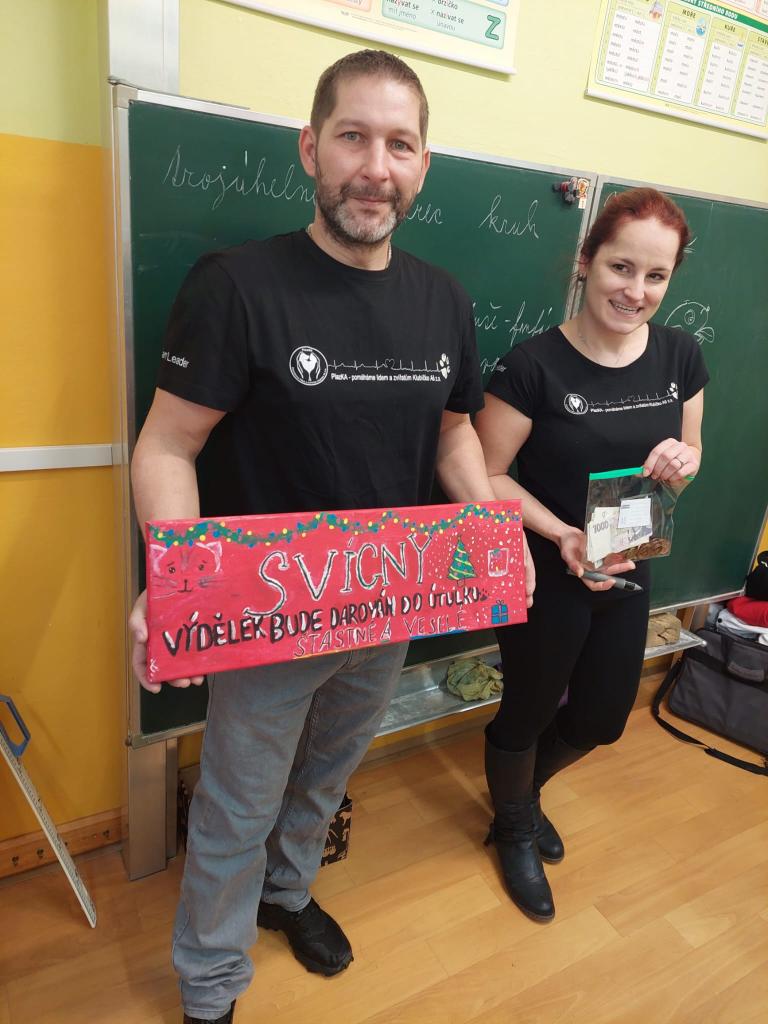 Třídy 4.A, 4.B a družina paní vychovatelky Neubauerové nakoupila z výtěžku Vánočního jarmarku psímu útulku v Horní Hraničné krmení pro opuštěná zvířata a kočičímu útulku PlazKA (Klubíčko Aš z.s.) přispěla finančním darem na operaci kočičky sražené autem.