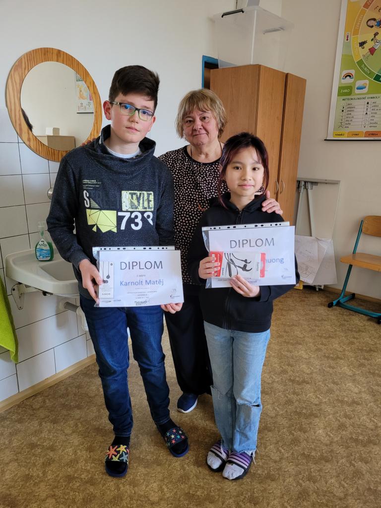 Skvělého výsledku dosáhli v letošním okresním kole matematické olympiády pátých ročníků hned dva naši žáci. Celkovou vítězkou se stala Duong Anh Phuong z 5. A a hned za ní skončil na děleném druhém místě Matěj Karnolt z 5. B. Oběma děkujeme za vzornou reprezentaci školy.