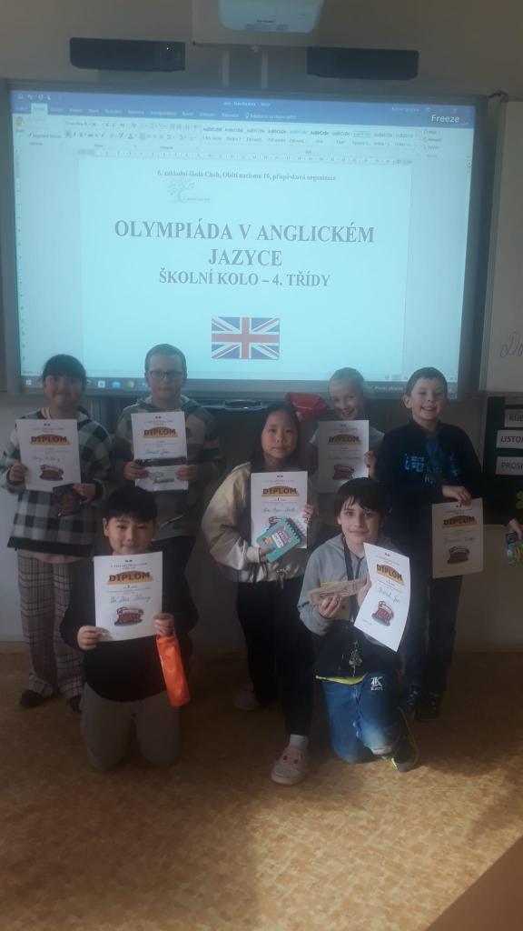Dne 22. 2. proběhlo školní kolo olympiády v anglickém jazyce. Soutěže se zúčastnili ti nejlepší z ročníku, aby se utkali ve svých vědomostech získaných za rok a půl výuky cizího jazyka. Žáci předvedli své komunikační dovednosti, pohotovost ve tvoření odpovědí na různé otázky, na základě popisu obrázku pak osvojenou slovní zásobu.