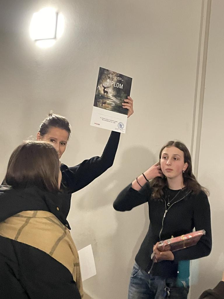 Jeho Dne 3. prosince 2025 proběhla vernisáž výstavy Dětské kresby na téma Jeho Veličenstvo les. Naši žáci se do soutěže zapojili s velkým nadšením a kreativními nápady, což se projevilo i na výsledcích. Viktoriia Borohan získala 1. místo v kategorii 13–15 let, za což jí srdečně gratulujeme.