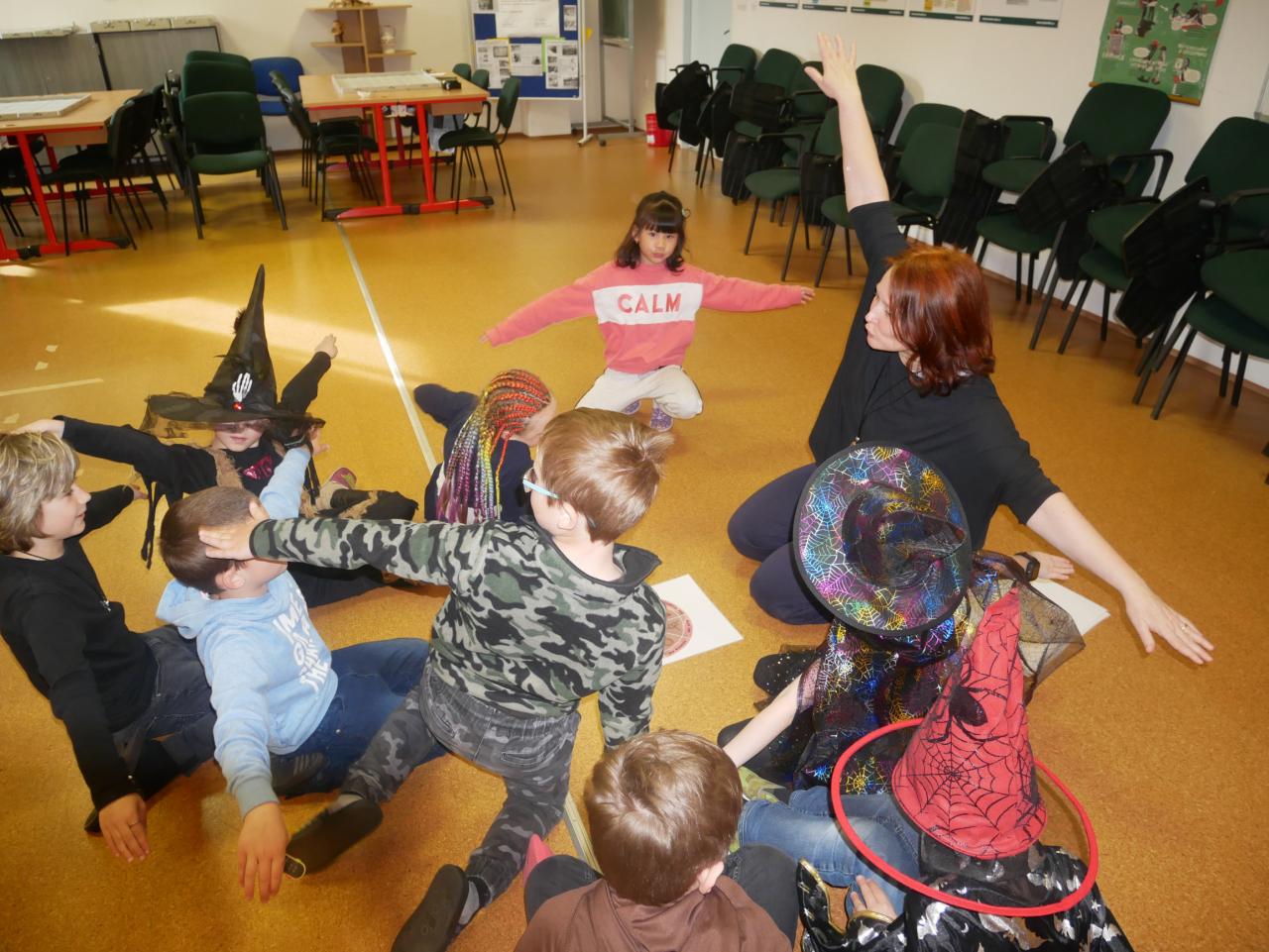 Význam jednotlivých sloves byl upevňován za pomoci pohybu. Žáci tedy skákali, běhali, lyžovali nebo tancovali. V druhé části děti samy procházely jednotlivými stanovišti. Zde bylo potřeba si přečíst krátkou větu a splnit úkol. Naši prvňáčkové s čtením v německém jazyce právě začínají, a tak s malou dopomocí zvládli zadání přečíst, pochopit a udělat. Úkolem bylo třeba zalít květinu, něco vyfotit, zatlouct hřebík nebo spočítat jednoduché příklady.