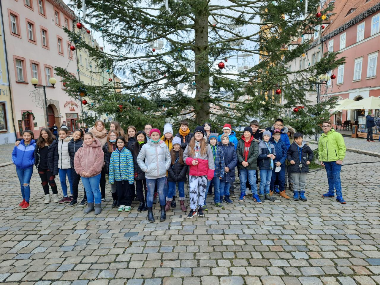 7. 12. 2021 jsme navštívili vánoční koncert. Při zpáteční cestě jsme se vyfotili u stromečku na náměstí.
