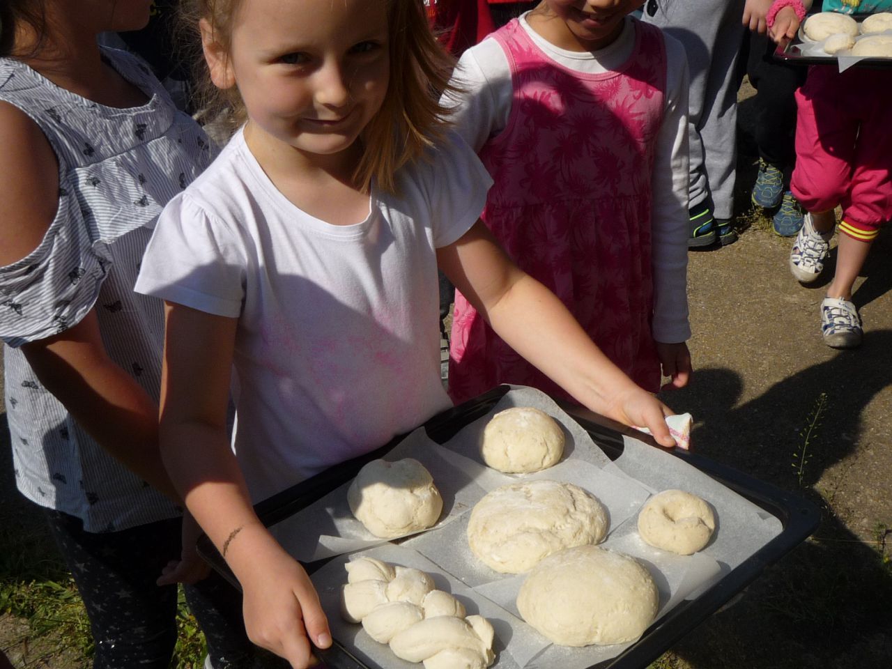 Na Den dětí jsme vyrazili do Dolních Dvorů do Ekocentra, kde jsme si upekli svůj vlastní chleba, nakrmili zvířátka a ještě si vyzkoušeli další dovednosti, třeba dojení mléka nebo mletí mouky.