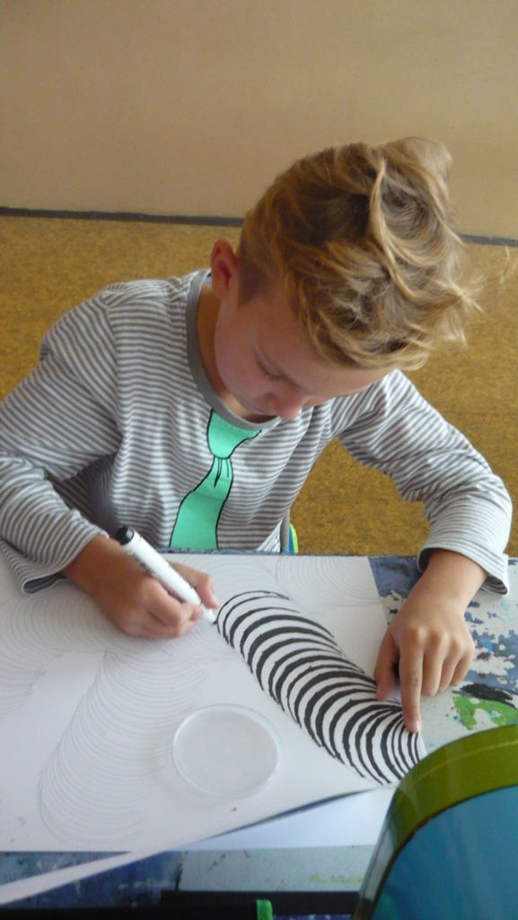 Odpadový materiál využívá při výuce výtvarné výchovy paní učitelka Plevná. Žáci IV. B pod jejím vedením obkreslovali víčka různých velikostí, a vytvářeli tak žížalky různých velikostí. Jejich práce budou zdobit třídní nástěnku a Ekoklubovnu.