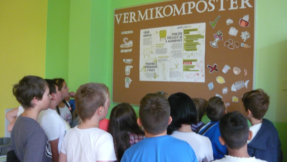 V rámci předmětu Člověk a jeho svět, ve kterém se právě zabýváme půdou, navštívila naše třída novou Ekoklubovnu, kde žáci mohli pozorovat kalifornské žížalky. Společně jsme si ukázali, z čeho se skládá jejich domeček - vermikompostér a vysvětlili si jejich přínos. Poté jsme debatovali o tom, co vše žížalkám prospívá a co nikoli, a své závěry si pak ověřili na nástěnce vytvořené Ekotýmem.